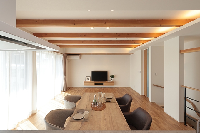 家族と愛犬が健やかに過ごすのびやかなワンフロアの平屋 家族と愛犬が健やかに過ごすのびやかなワンフロアの平屋 段差なく広がるのびやかな平屋の住まい。キッチンからフロア全体が見渡せて、庭も視界に入る広々としたリビングを核に、行き止まりのない動線にこだわりました。「ただいま、おかえり」が言えるよう、子ども部屋は一番奥に配置。ご主人リクエストの地下空間はシアタールームになるそう。子どもと愛犬が家じゅうを活発に動き回る姿に、幸せを実感できます。