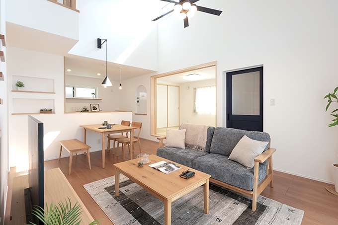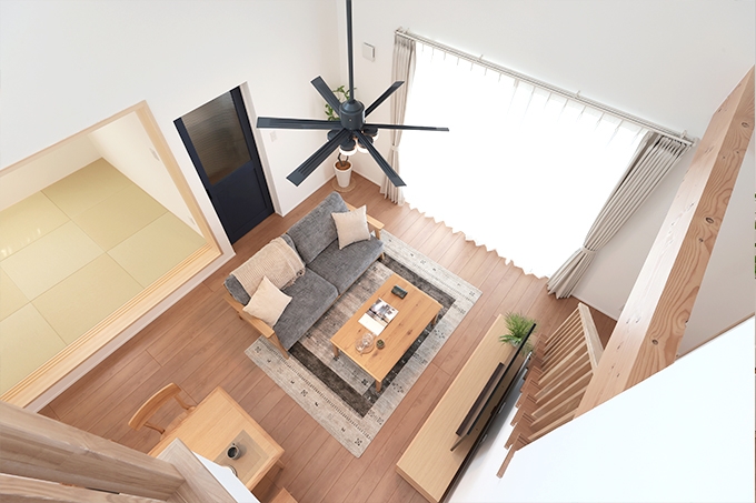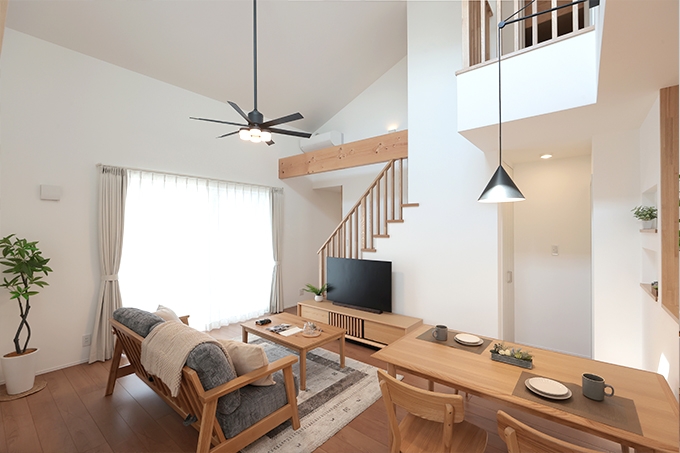 暮らしやすさにこだわった人気プラン「SUMIKA」の家 暮らしやすさにこだわった人気プラン「SUMIKA」の家 自然のエネルギーを活かしたパッシブ設計と開放的な勾配天井でつながる広々LDK、1階に寝室を設け平屋ベースで生活でき、2階は洋室のみのシンプルな間取り。LDKから繋がる広々ウッドデッキは、一人でのんびり過ごしたり、家族でBBQをしたりと楽しみ方は無限大!たっぷり収納+らくらく家事動線+快適エアムーブの全てが叶う、暮らしやすさにこだわった住まいです。